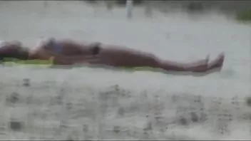 U večernjim satima na bazenu faca lijepo vitku curu